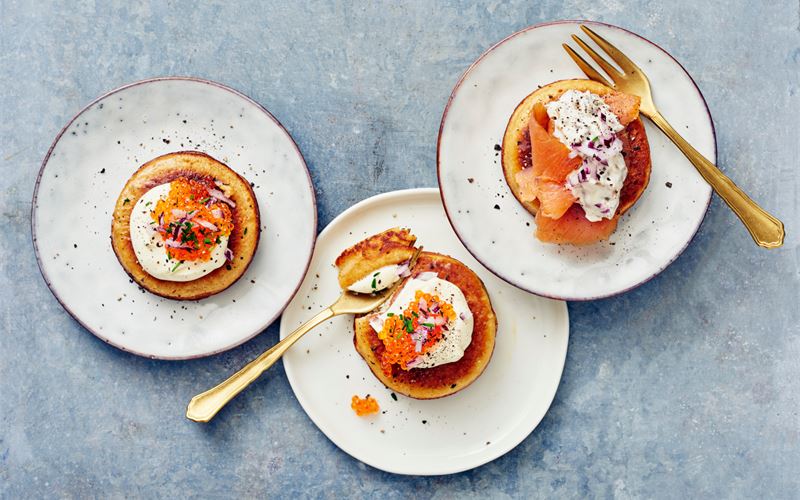Kevättalven rennoimmat illallisjuhlat syntyvät blinien ja helppojen täytteiden yhdistelmästä. Sisältä pehmeät ja pinnalta rapeat letut katoavat nopeasti parempiin suihin, joten blinejä kannattaa tehdä runsaasti. Ylijääneet blinit voi pakastaa myöhempiä herkkuhetkiä varten.