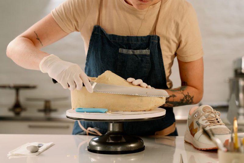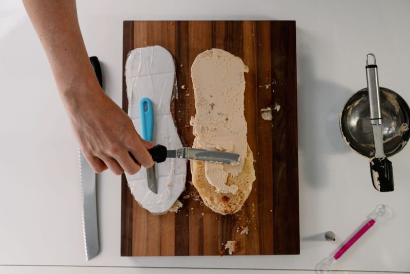 Leikkaa kakun nilkkaosioon aukko esimerkiksi pienempää hedelmäveistä apuna käyttäen. Koverra ylimääräinen kakkumassa pois pienissä osissa ja päällystä myös sisäpuoli kreemillä. Siirrä kenkäkakku jääkaappiin asettumaan.