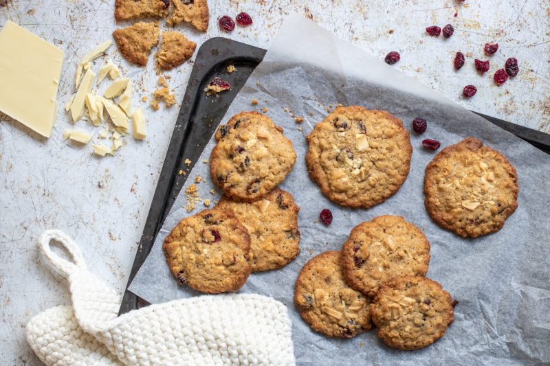 Helppoa ja herkullista – näin valmistat valkosuklaa-karpalocookiet