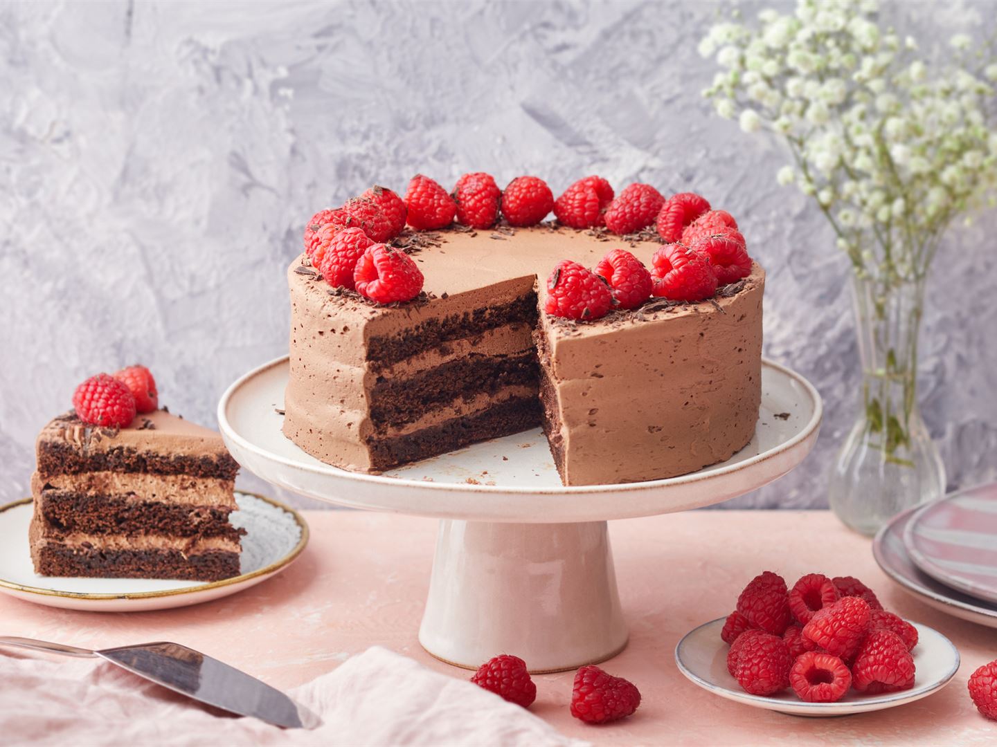 Maistuisiko äidille samettinen mansikkajuustokakku, valkosuklaalla tuunattu mutakakku tai vadelmainen suklaakakku? Tässä viisi raikasta reseptiä äitienpäivän herkkuhetkiin.