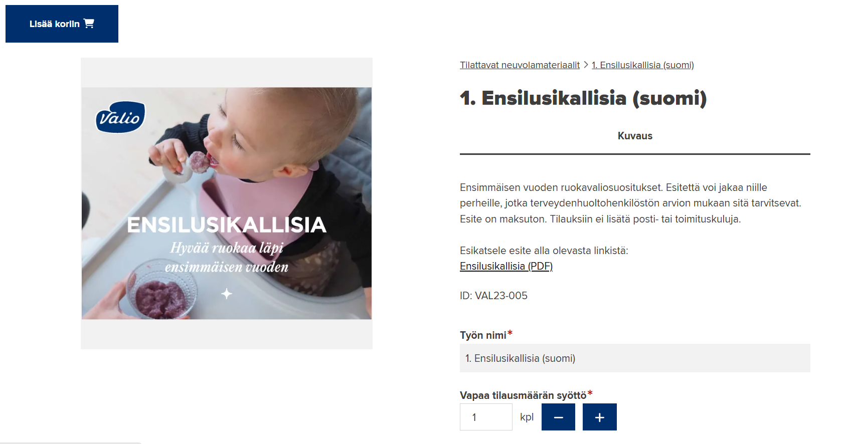 Tarjoamme suomalaisiin ravitsemussuosituksiin pohjautuvia imeväisten ja pikkulasten ruokintaa koskevia ravitsemusmateriaaleja. Materiaalimme ovat Terveyden ja hyvinvoinnin laitoksen hyväksymiä.