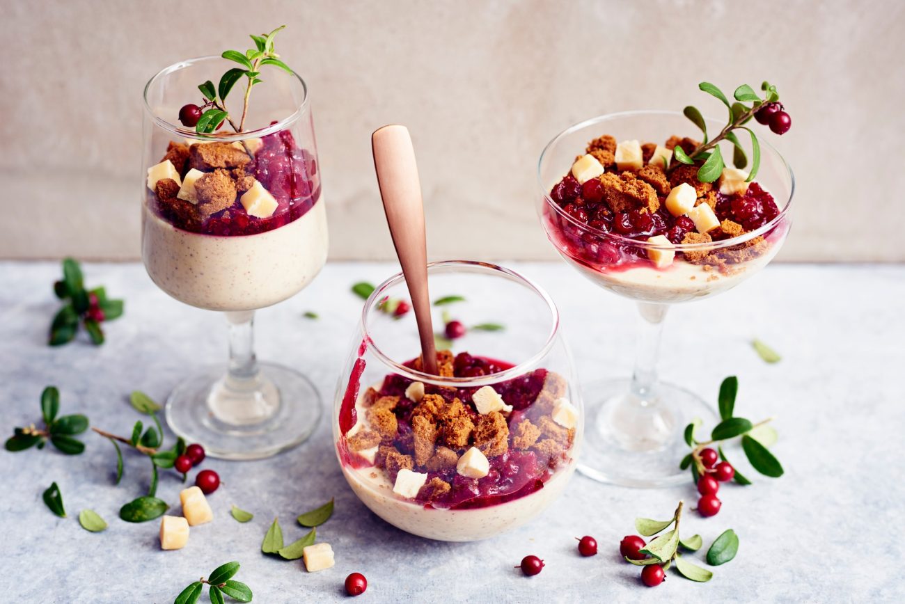 Puolukka ja kinuski ovat makupari, jota voisi klassikoksikin kutsua. Kokeile banoffeesta innoituksensa saanutta puoloffeeta tai puoloffee-pannacottaa, joissa kinuskinen makeus kesyttää kirpsakat puolukat vastustamattomaksi herkuksi. Suussasulava jälkiruoka on myös valkosuklainen puolukkapannacotta, joka hurmaa yksinkertaisuudellaan. Jos kaipaat perinteisiä makuja, vispipuuro tuo hymyn huulille kerta toisensa jälkeen.