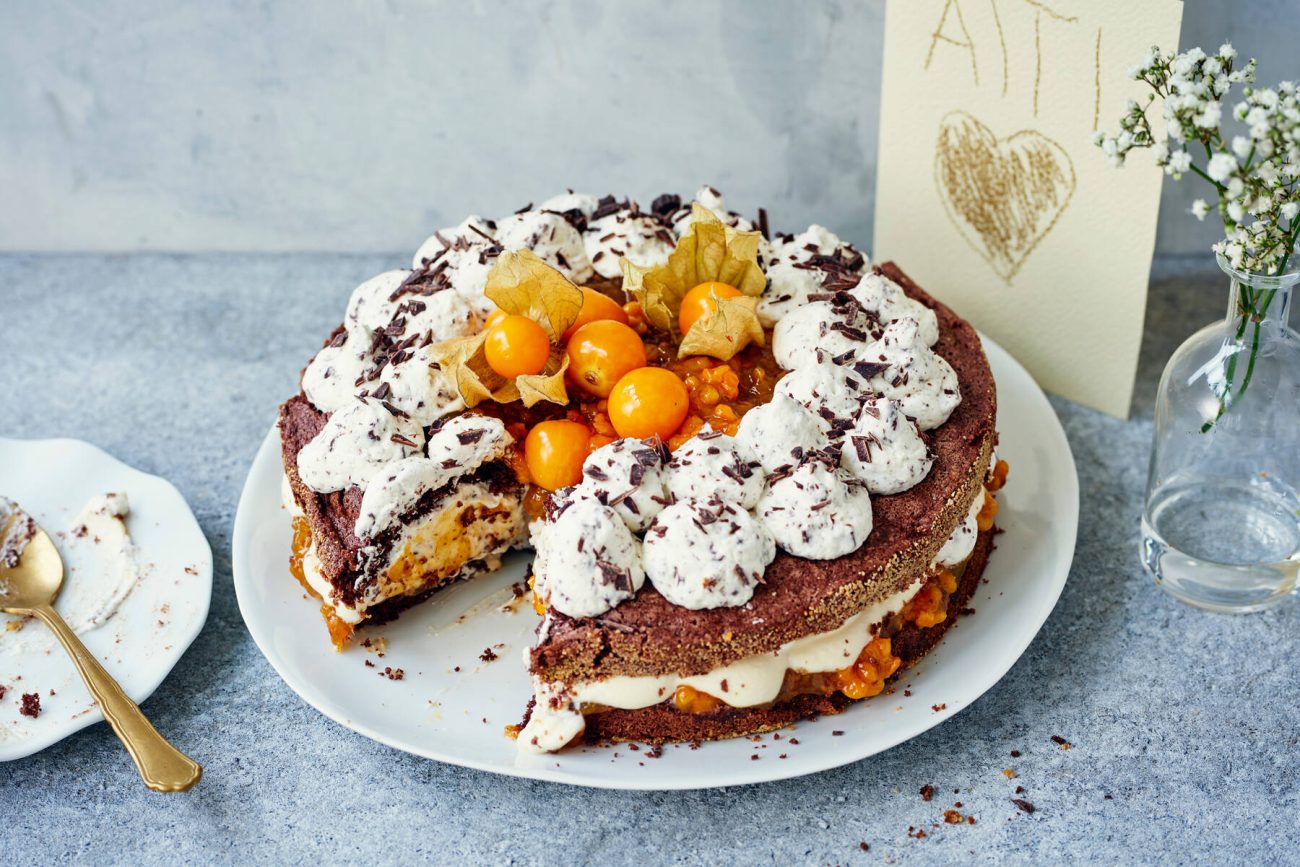 - Kaada taikina voideltuun ja korppujauhotettuun Ø 20 cm kakkuvuokaan. Paista 175 asteen lämpötilassa uunin alaosassa 20 min. Jäähdytä ja kumoa.