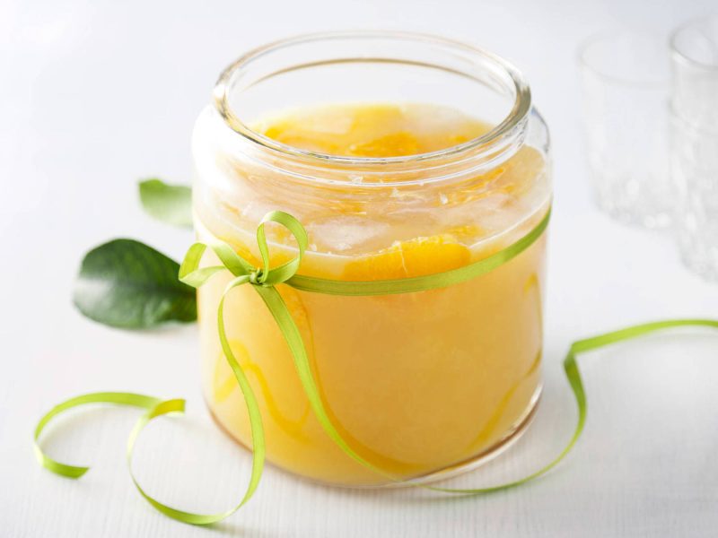 - Sekoita juuri ennen tarjoilua täysmehu ja ginger ale. Lisää kannuun appelsiiniviipaleita ja jääpaloja.