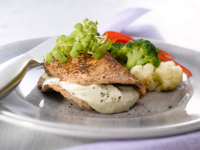 - Lisää jokaisen pihvin päälle reilu nokare AURA juustoa. Taita lehtipihvit kaksinkerroin.