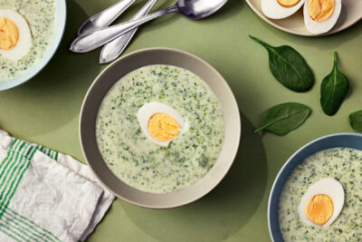 - Lisää ruokakerma ja AURA muru. Pese pinaatti ja poista isommista lehdistä varret, suikaloi ja lisää keittoon. Lisää hienonnettu persilja. Anna kiehahtaa.