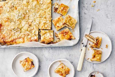 - Piparicrumble: yhdistä mantelilastut, pähkinät, voi, fariinisokeri ja käsin murretut piparit.