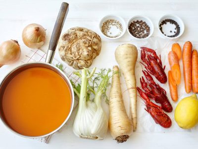 - Valuta ravunpyrstöt ja laita pannun koloihin valkosipulien päälle.