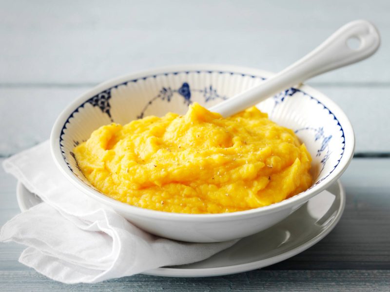 - Survo soseeksi ja lisää keitinvettä, jos sose tuntuu liian kuivalta. Lisää kuumaan soseeseen voi ja kerma. Tarkista suola. Vatkaa ilmavaksi.