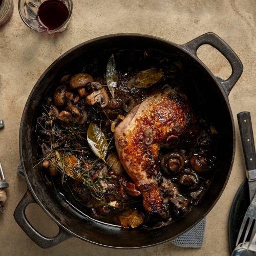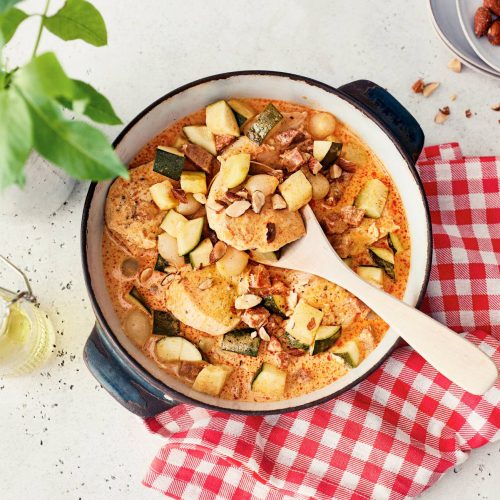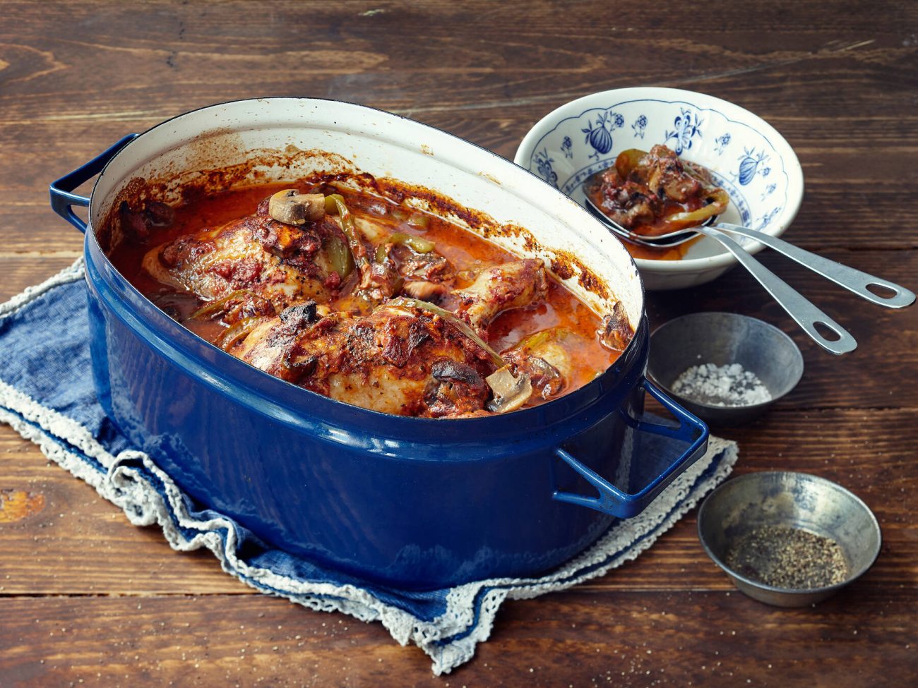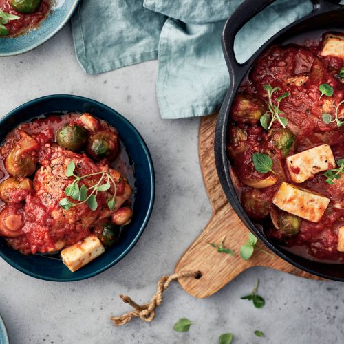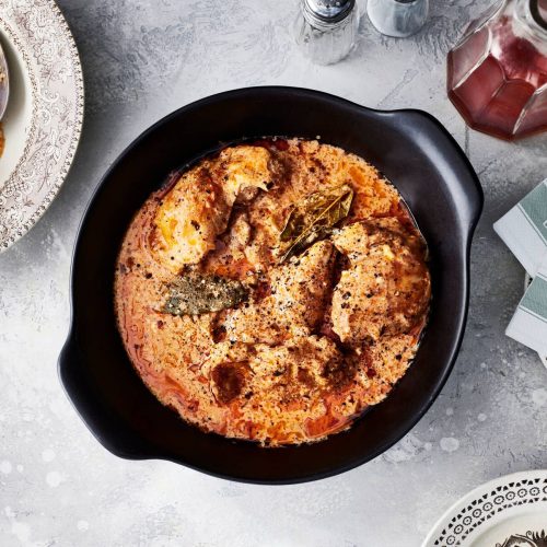 - Kypsennä uunissa 200 asteessa ensin 10 min ilman kantta. Peitä kannella ja jatka kypsentämistä 1 h 15 min.