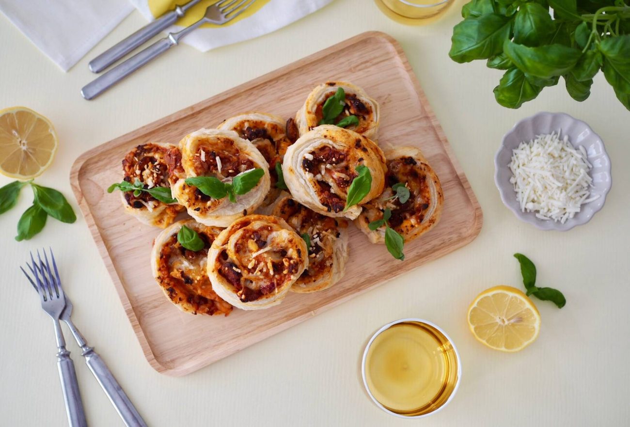 Delikaurarullat ovat täydellinen suolainen herkku illanistujaisiin tai vaikkapa brunssille! Voit käyttää valmistuksessa mitä tahansa Delikaura-makua tai vaihtaa halutessasi pizzakastikkeen pestoon. Vegaaninen tarjottava sopii moneen ruokavalioon!
