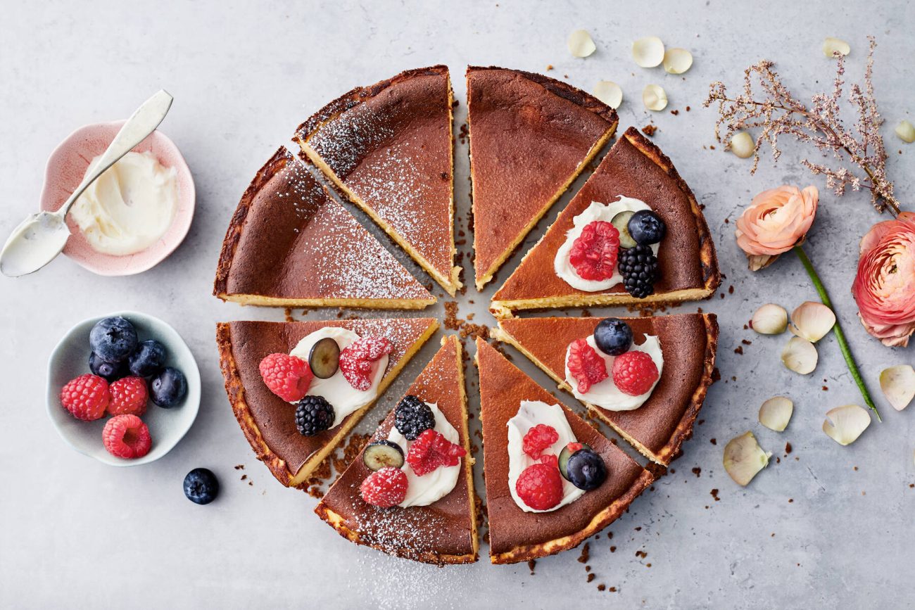 - Sulata voi. Murskaa keksit tehosekoittimessa ja sekoita joukkoon voisula. Pingota leivinpaperi irtopohjavuoan (ø 23 cm) pohjan ja reunan väliin. Painele keksiseos vuoan pohjalle.