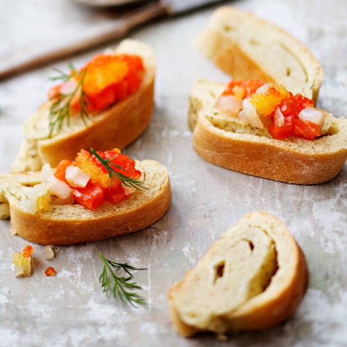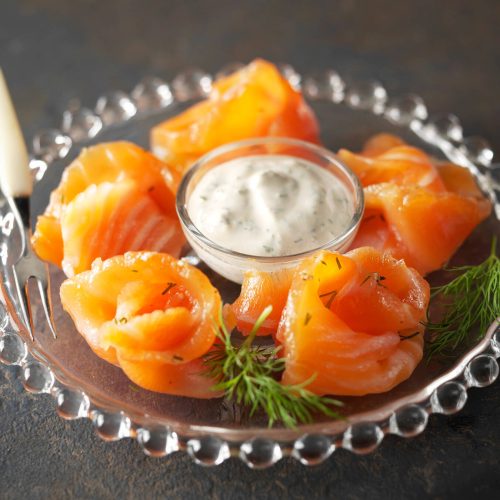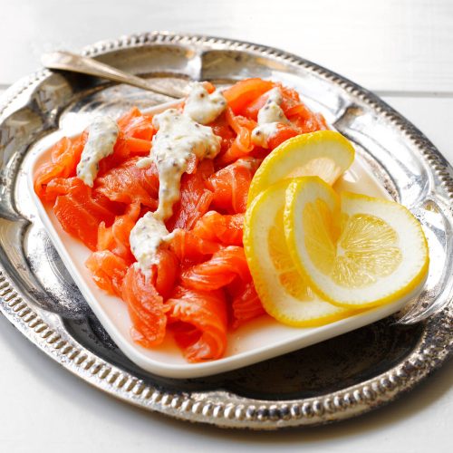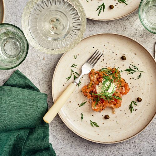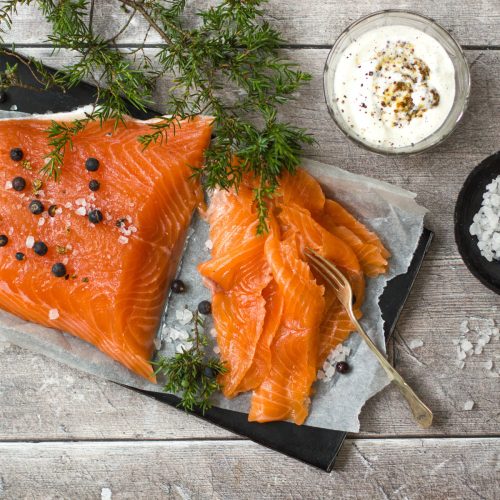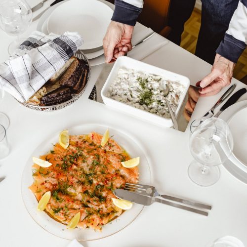 - Kuutioi kuorittu omena ja graavilohi pieniksi paloiksi. Hienonna sipuli.