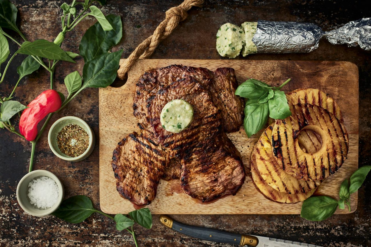 - Nosta pihvien päälle grillatut ananakset ja AURA voista leikattu maustevoinappi.
