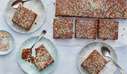 - Vatkaa munat ja sokerit vaahdoksi. Yhdistä kuivat aineet keskenään. Lisää vaahtoon vuorotellen kuivia aineita, voisulaa ja kuritsaraastetta samalla sekoitellen.