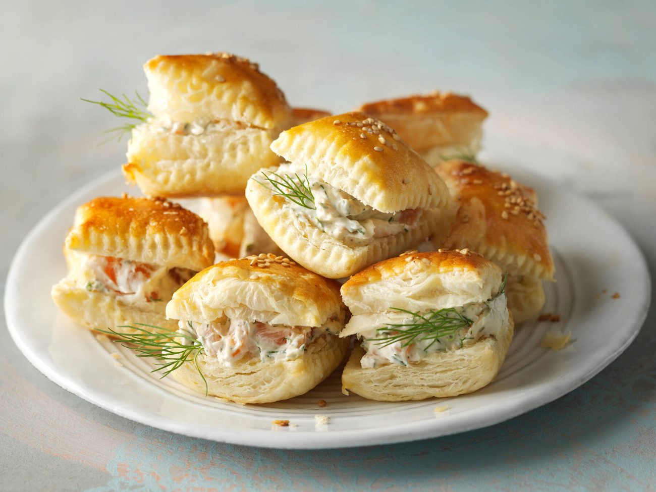 - Valmista täyte sekoittamalla tuorejuustoon hienonnettu kylmäsavulohi. Mausta.