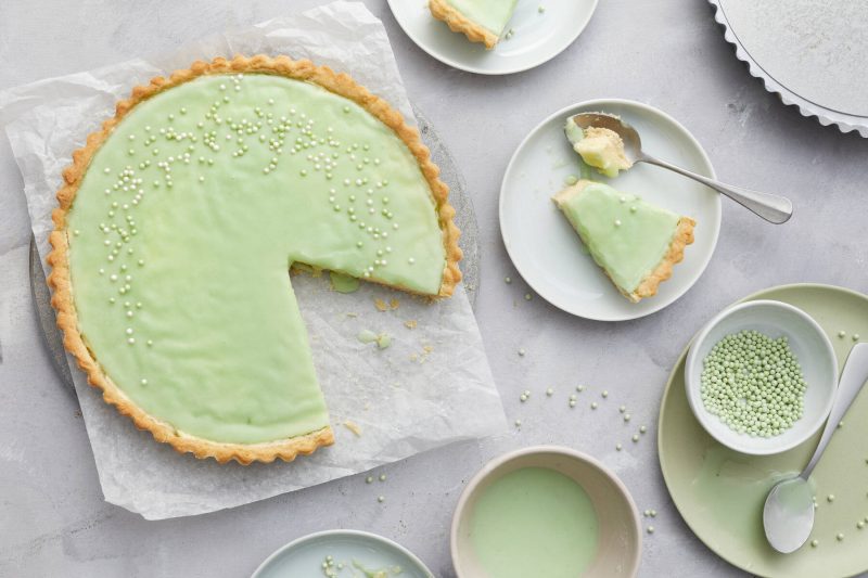 - Levitä kuorrute piiraan pinnalle ja koristele nonparelleilla. Säilytä jääkaapissa.