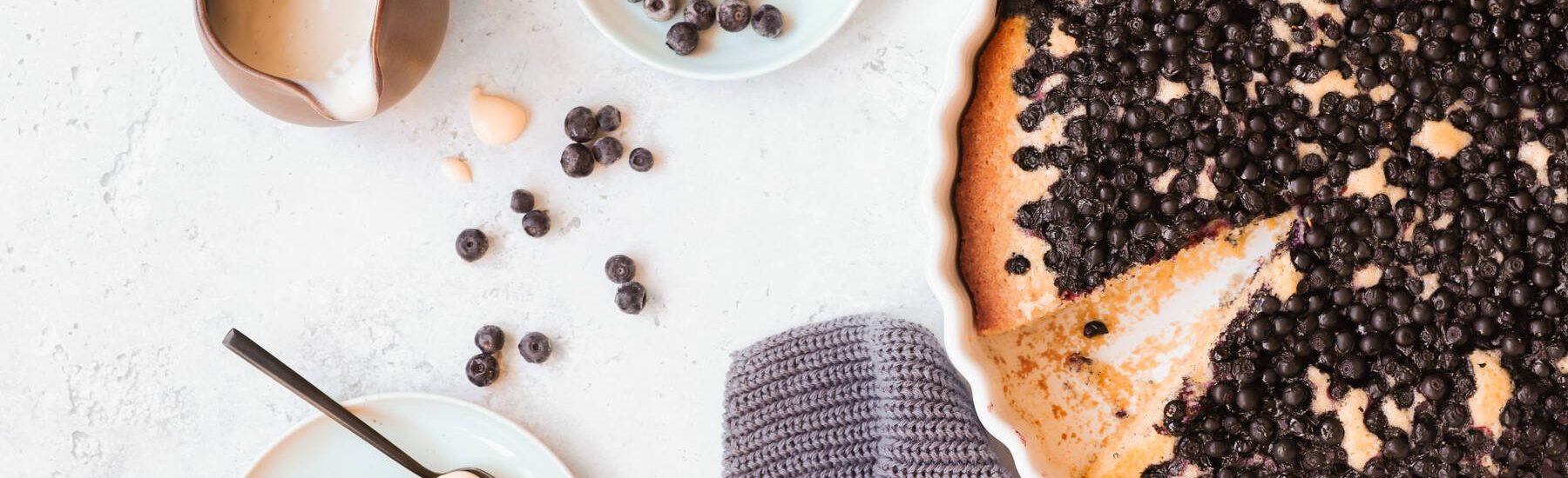 Mustikkapiiras syntyy vähällä vaivalla ja maistuu vaniljakastikkeen kanssa.