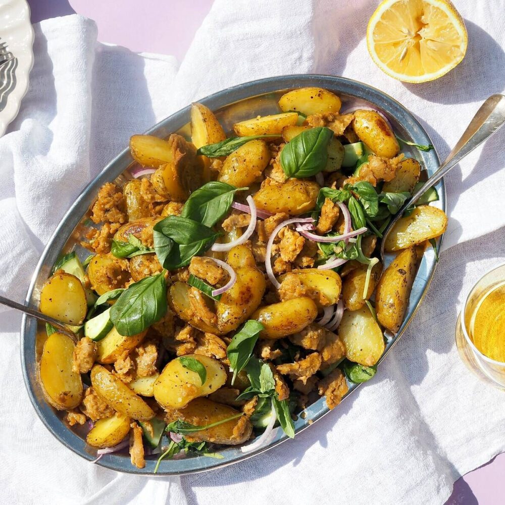 Imanin ja Leenan tofuvartaat ja kaalisalaatti