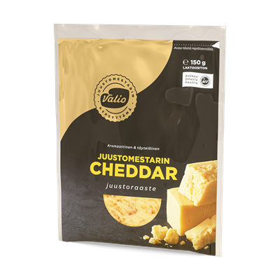 Valio Juustomestarin cheddar raastettaValio Juustomestarin cheddar juustoraaste on aromaatinen ja täyteläinen juustoraaste, joka on valmistettu laadukkaasta, kypsytetystä cheddarjuustosta.…