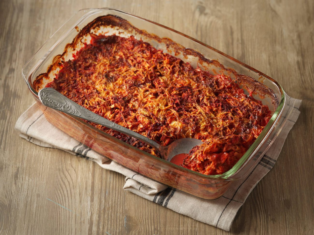 - Raasta juurekset karkeaksi raasteeksi raastimen karkeimmalla terällä. HIenonna sipulit. Sekoita kasvikset ja mausteet keskenään ja kaada voideltuun, reilunkokoiseen uunivuokaan.