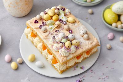 - Kokoa pavlova juuri ennen tarjoilua: Asettele marengit, rahka ja kermavaahto kerroksittain keoksi.