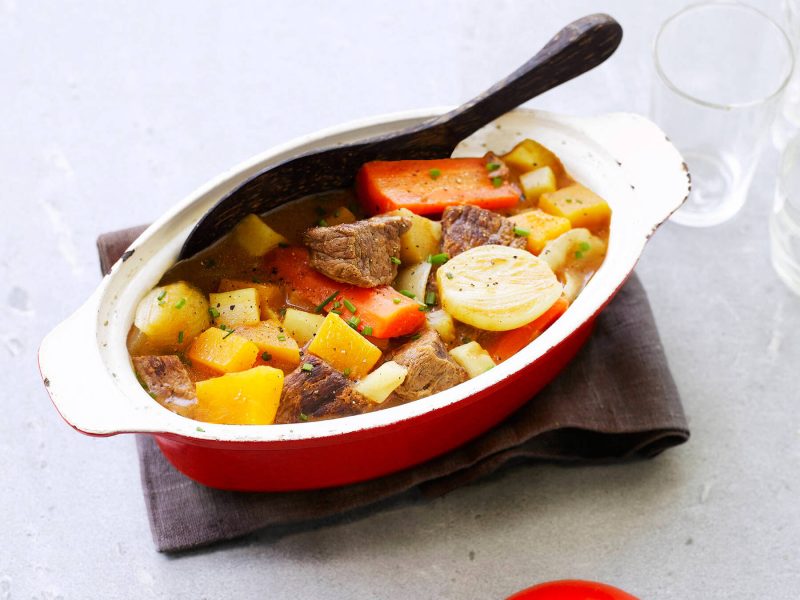 - Anna kiehua vielä n. 30 min. Tarkista lihan ja juuresten kypsyys.