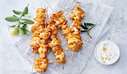 - Tikuta kasvikset varrastikkuihin siten, että sieniin tulee kiinni kasvispala. Tämä estää sulavaa juustoa valumasta grilliin.