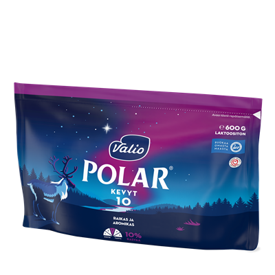 Valio Polar® 10% juustoaValio Polar® on saanut innoituksensa pohjoisesta luonnosta, joka ei tunne kompromisseja. Sen maku on samaan…