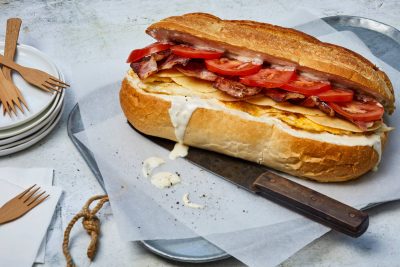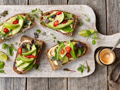 - Voitele leipäviipaleet. Leikkaa ne kahtia.