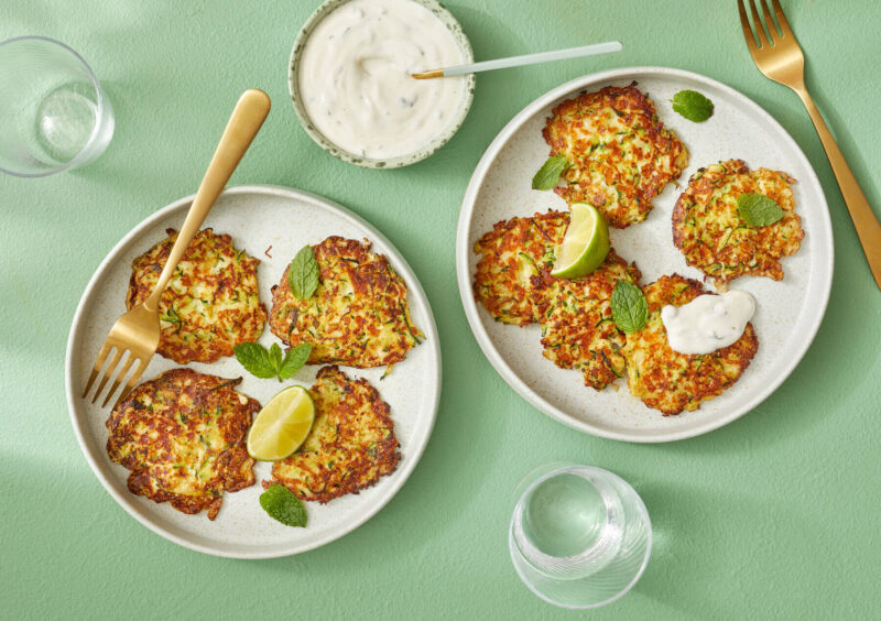 - Tarjoa kesäkurpitsa-halloumipihvit jogurttikastikkeen kanssa.