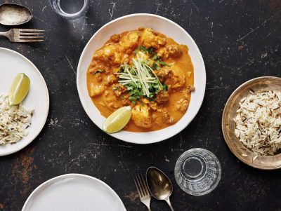 - Ripota pinnalle korianterisilppua. Tarjoa riisin kanssa.