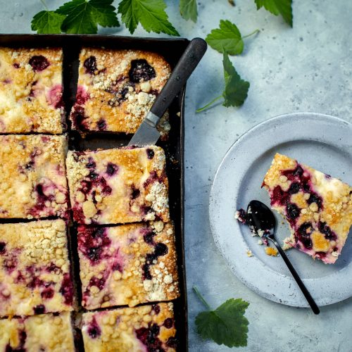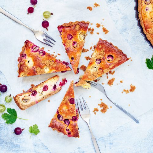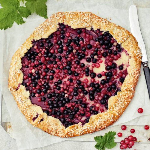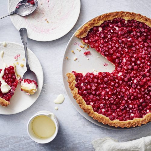 - Levitä taikina voideltuun piirakka- tai irtopohjavuokaan (Ø 23 cm). Ripottele päälle jäiset mustikat.