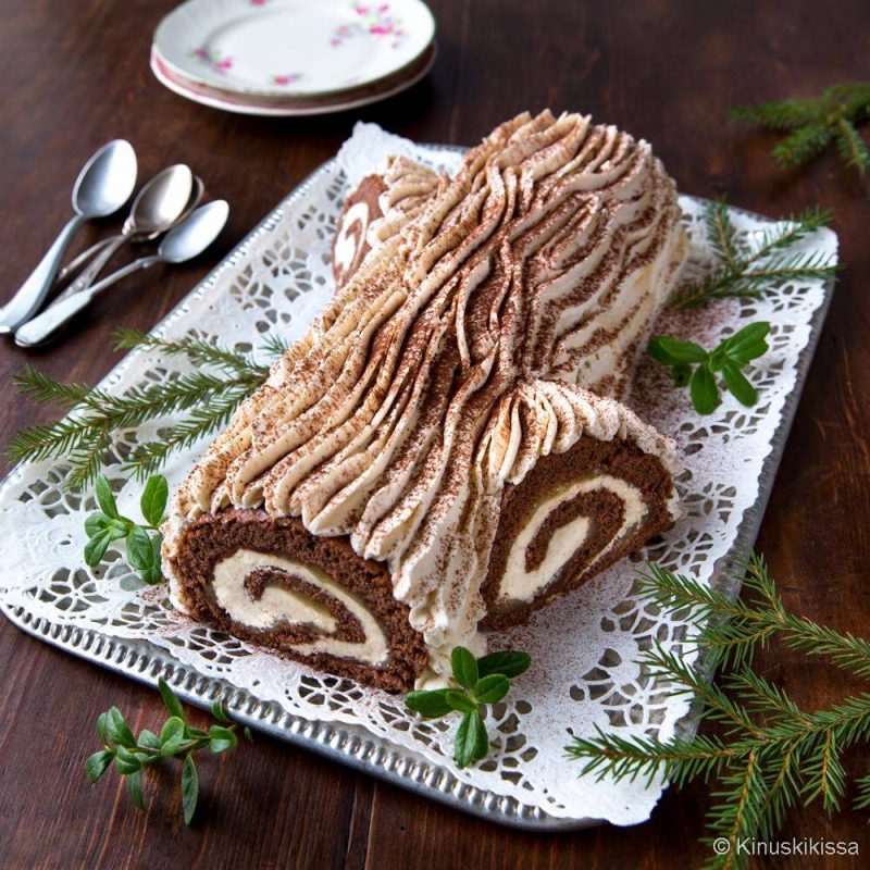 - Viimeistele jouluhalko siivilöimällä päälle kaakaojauhetta.
