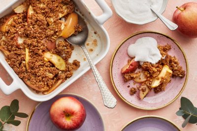 - Laita annosmaljoihin kerroksittain kuningatarrahkaa ja kiiviä. Kaada annosten päälle hiukan lämmitettyä kinuskikastiketta.