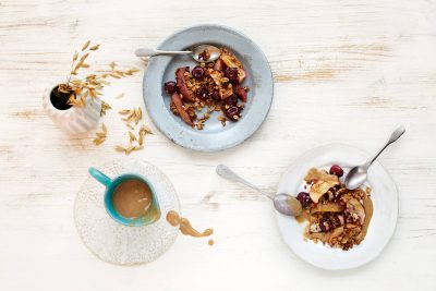- Paahda mantelilastut kuivalla, puhtaalla pannulla. Jäähdytä. Lisää annosten päälle.