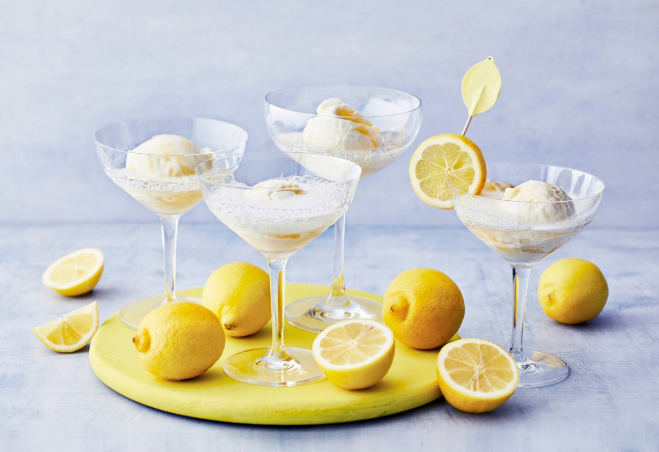 - Ota jäätelöpurkista pienellä jäätelökauhalla palloja ja laita ne amerikkalaisiin shampanjalaseihin.