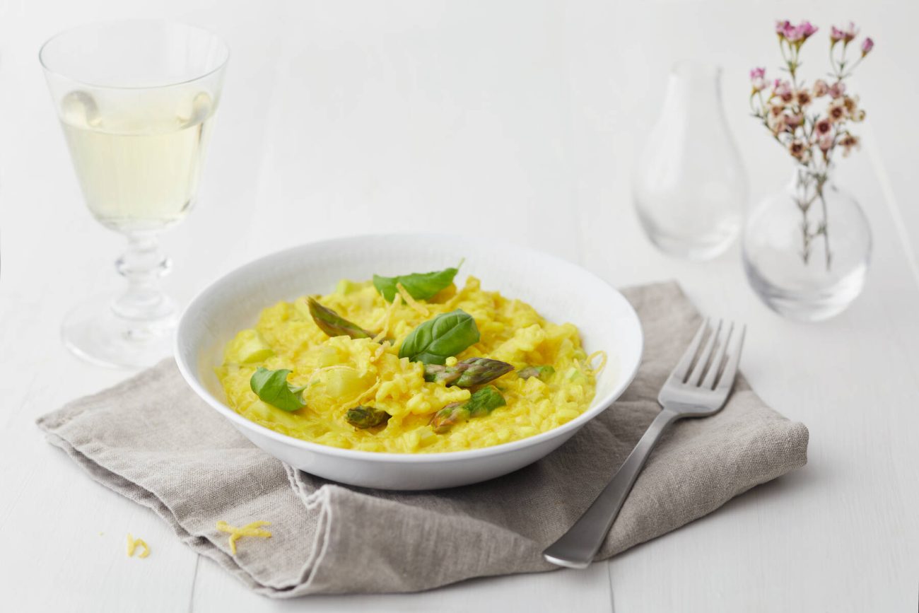 - Paloittele ja paista parsapalat kevyesti Oivariini rasvassa (1 rkl), niin että ne hieman pehmenevät. Mausta 1 tl sitruunamehua ja ripauksella suolaa. Lisää parsapalat risottoon lopuksi, jätä osa nuppupaloja annoksen koristeluun.
