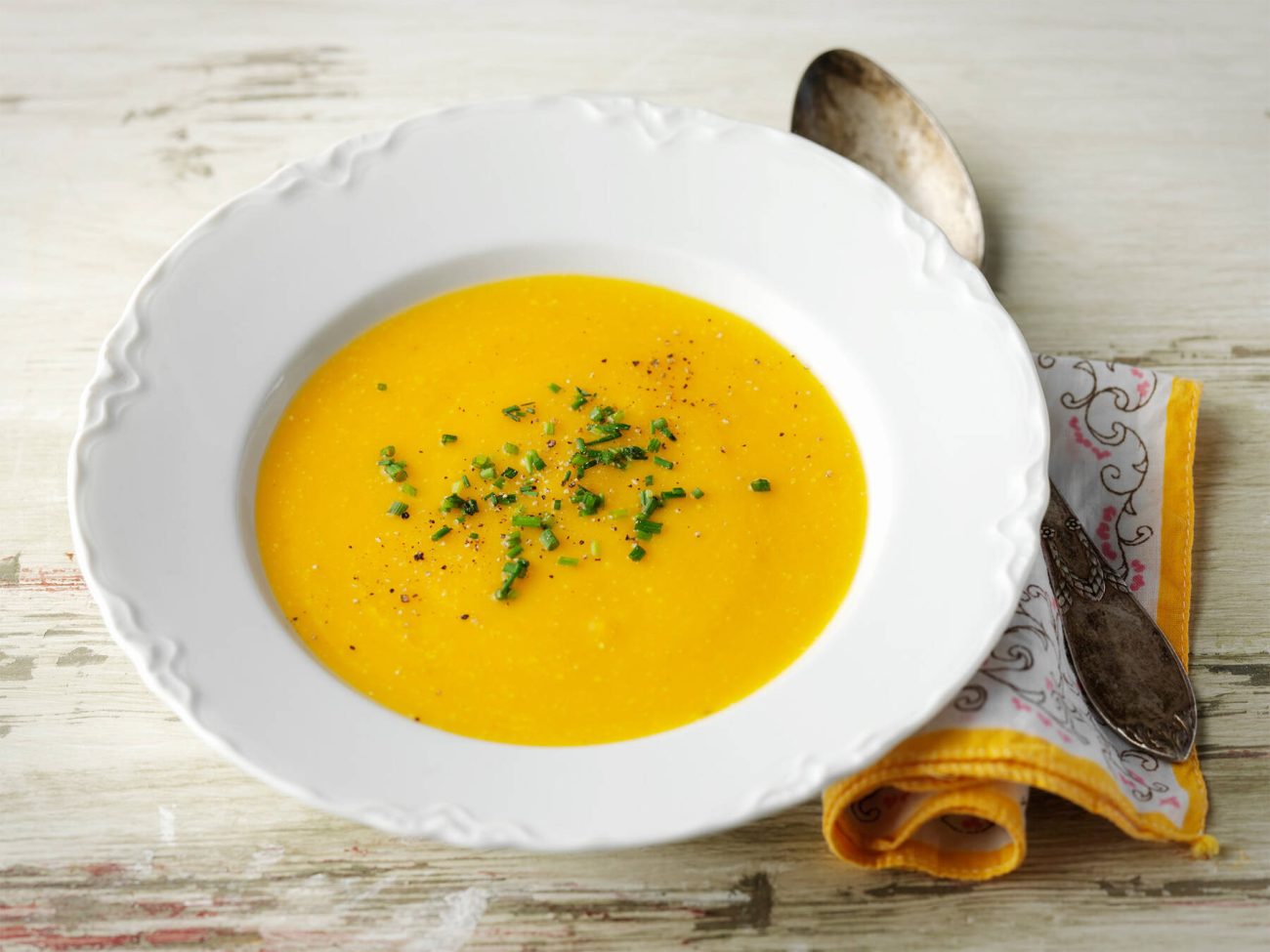 - Lisää kiehuvaan kana- tai kasvisliemeen kurpitsa- ja bataattipalat. Anna kiehua kannen alla hiljalleen kypsiksi.