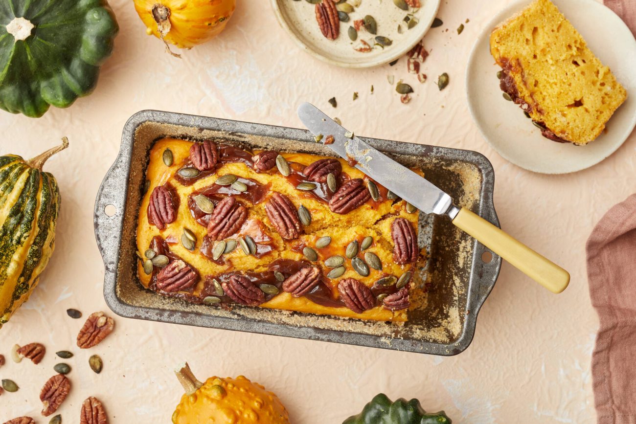 - Sekoita kuivat aineet kulhossa. Lisää Oivariini, kurpitsasose, munat ja piimä. Sekoita tasaiseksi, älä kuitenkaan vatkaa turhaan.