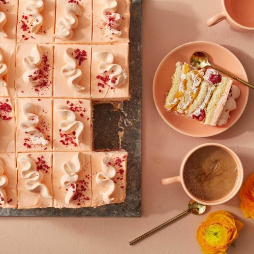 - Vatkaa kerma vaahdoksi. Mausta sokereilla. Pursota kakun reunat.