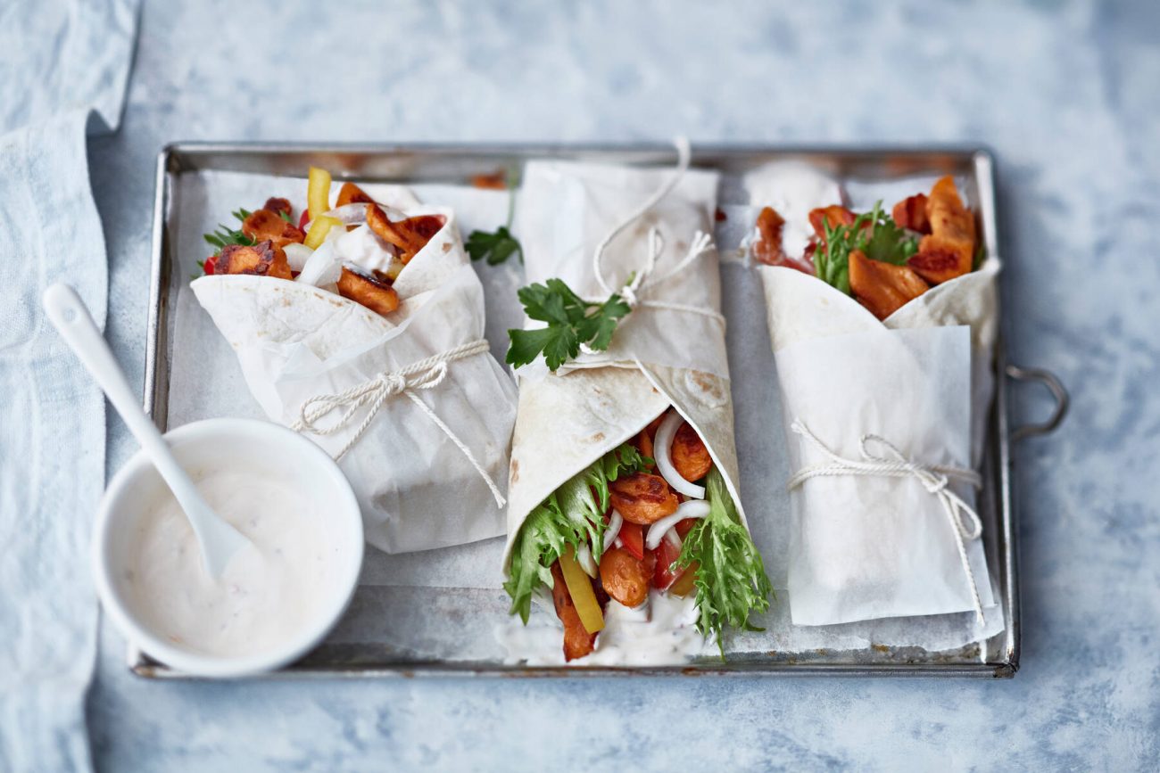 - Kääri wrapit joko leivinpaperitaskuun tai laita kahvisuodatinpussiin. Tarjoa heti.