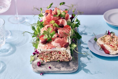 - Koristele voileipäkakku ohuilla retiisiviipaleilla, minisalaattisekoituksella ja granaattiomenan siemenillä.