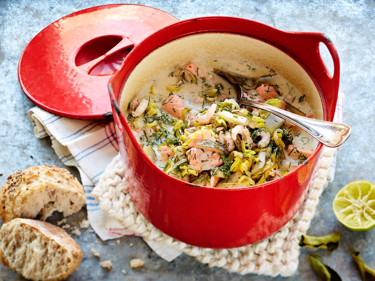 - Lisää katkaravut ja hienonnettu tilli. Kuumenna - älä enää keitä.