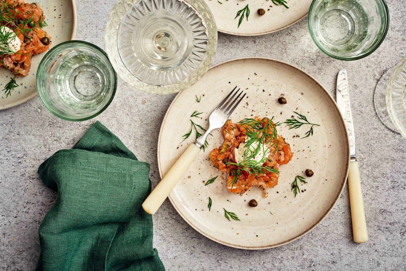 - Muotoile seoksesta muotin avulla 4 annosta annoslautasille.