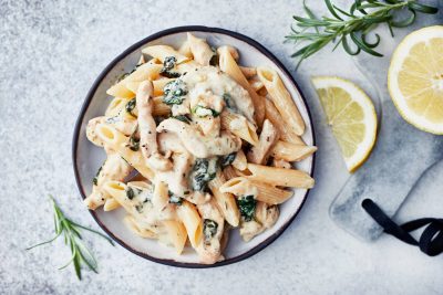 - Lisää pastaan juustokerma ja n. 1 dl keitinvettä. Kiehauta.
