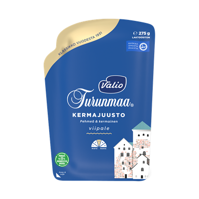 Valio Turunmaa® viipalettaValio Turunmaa® on perinteinen, hieno suomalainen kermajuusto, jossa pehmeä ja kermainen maku. Valmiina ja helppokäyttöisenä…