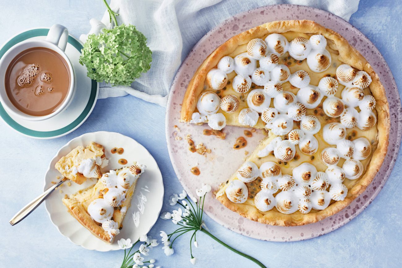 - Sekoita rahka ja kreemi keskenään. Halkaise passiohedelmät ja lusikoi sisukset rahkaseoksen joukkoon. Laita liivatteet hetkeksi likoamaan kylmään veteen.