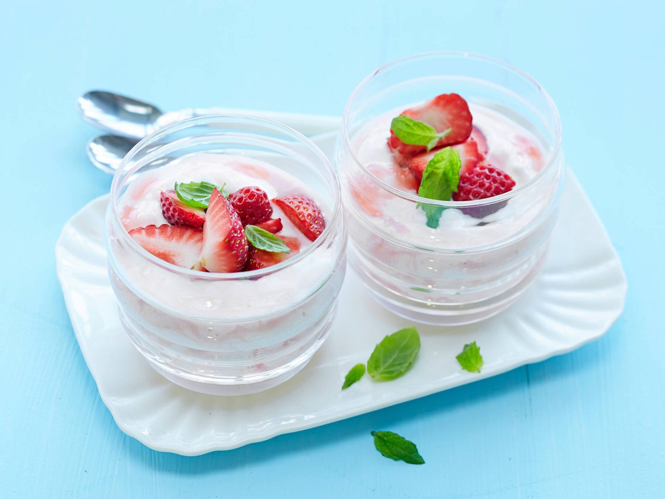 - Sekoita rahka ja mansikkakeitto. Paloittele päälle mansikoita.