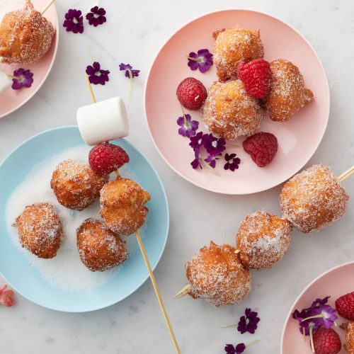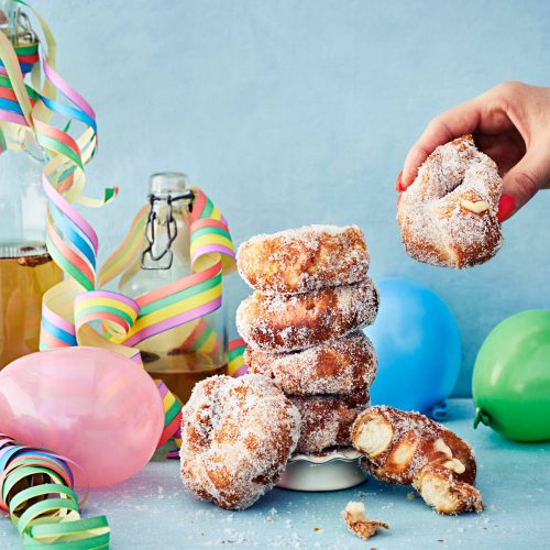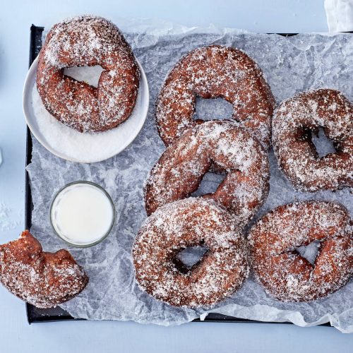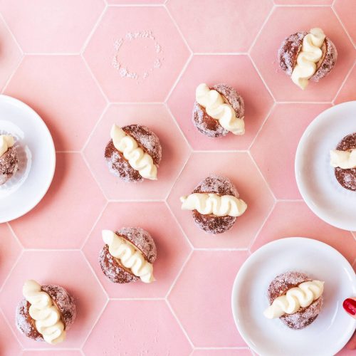 - Laita taikina pursotinpussiin ja pursota donitsipellin syvennyksiin.